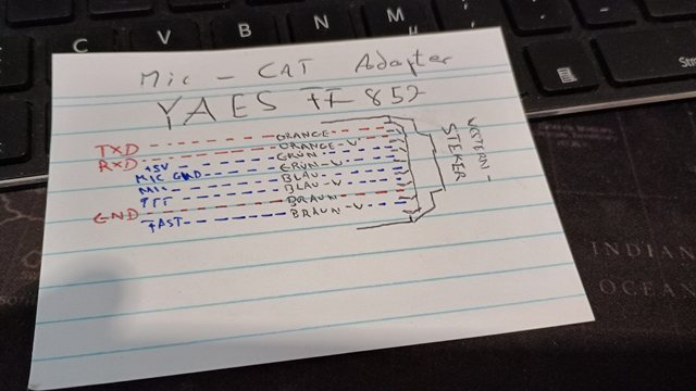 Zusammenfassung: Adapterkabel für die Mikrofonbuchse fertigen (Westernstecker bzw. RJ45). Ein Oled-Display und Arduino nano (waren schon vorhanden) diese verbinden und ein Programm musste geschrieben werden. Damit ich auch noch Funkbetrieb machen kann, brauchte ich noch eine Rj45 Buchse. Hinzu sollte auch noch die Möglichkeit kommen mit einen Cat-Bluetooth Sende- Empfänger auf die Schnittstelle vom Mikrofonanschluss zuzugreifen. Also musste auch eine MiniDin8Pol Buchse her. Bis ausser der RJ45 (Westernstecker-) Buchse ist alles vorhanden.