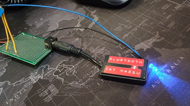 Oben drauf ist der Mikrofonanschluss daneben kann ich mit dem Schalter die Spannung schalten. Mittig wird keine Spannung zum Arduino weitergeleitet. Rechts wird Mic Spannung vom TRX geschaltet, so kann ich alles ohne PC betreiben. Links wird die Spannung zum 8Pol MiniDin weiter geschaltet und ich kann das Bluetooth-Modul nutzen. Und der PC ist auch angeschlossen. Es werden die Daten auch zum PC über die USB-Schnittstelle weiter geleitet. So kann ich zusätzlich noch an einem PC alles sehen und gleichzeitig das Programm umprogrammieren bzw. erweitern. Na es kommt aber noch ein großes Display dran. Das wird dann einen neuen Beitrag geben.