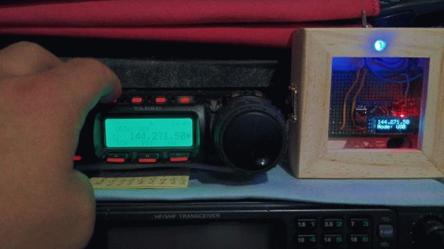 So alles war soweit bereit und sollte nun in einem Gehäuse unter gebracht werden. Ich habe für günstige 2Euro’s ein kleines Holzkästchen gekauft. In dem soll das ganze erstmal rein. Für das kleine Display ist das Holzkästchen mit eingebauten Sichtfenster etwas groß, aber ich möchte das jetzige Display später mal durch ein größeres Display ersetzen wo ich mir dann noch weitere Daten des Funkgerätes anzeigen lassen möchte.