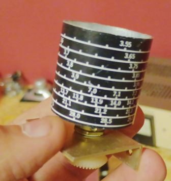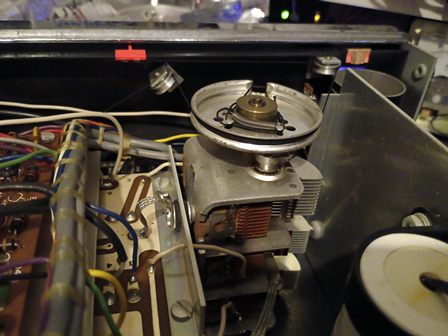 Also erstmal macht der Empfänger von innen einen guten Eindruck für sein Alter. Die Plattenkondensatoren haben keinen Kurzschluss und lassen sich auch recht gut über den Frequenzsucher bewegen. Das Röhrchen mit der angebrachten Bandskala war allerdings sehr locker. Die Mechanik wird über ein Seilzugsystem in gewünschter Position gebracht, was auch noch in einen guten Zustand ist.